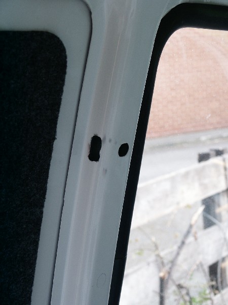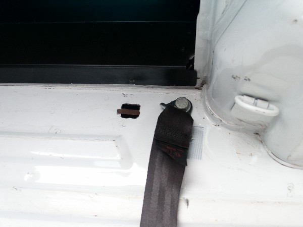 Top seatbelt fixing hole, showing additional hole for feeding captive nut