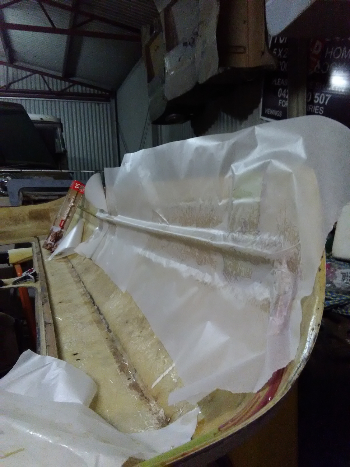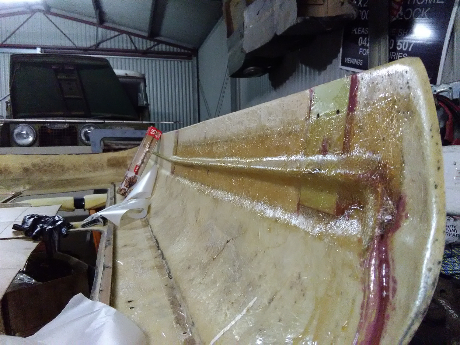 It was the first time I've ever tried fibreglassing and my first 2 attempts were a complete disaster! (I ended up scooping off the still wet matting and throwing it in the bin before it had a chance to set).