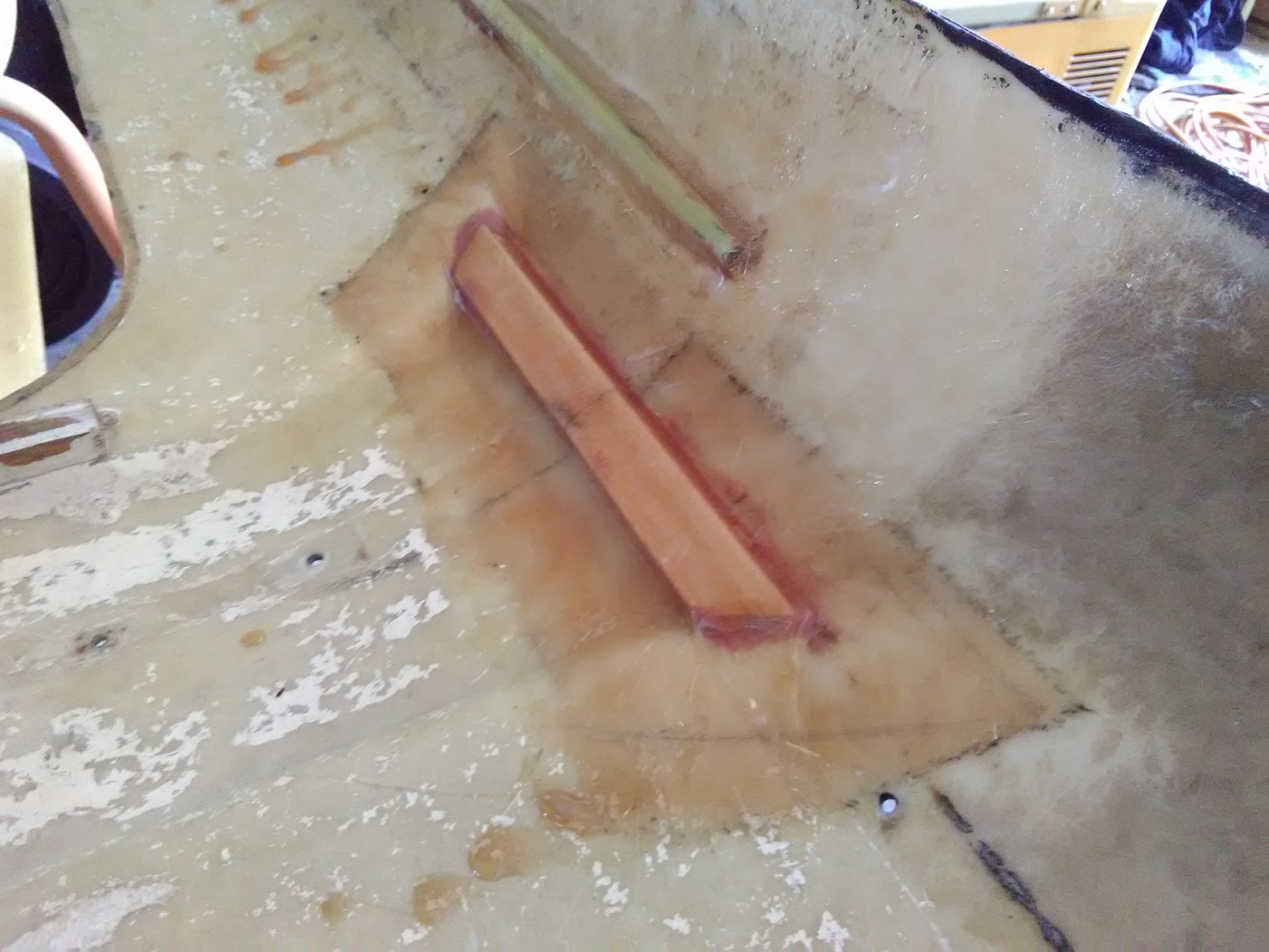 I've just finished fibreglassing over the new steel braces and wooden fillers in my Dormy roof.