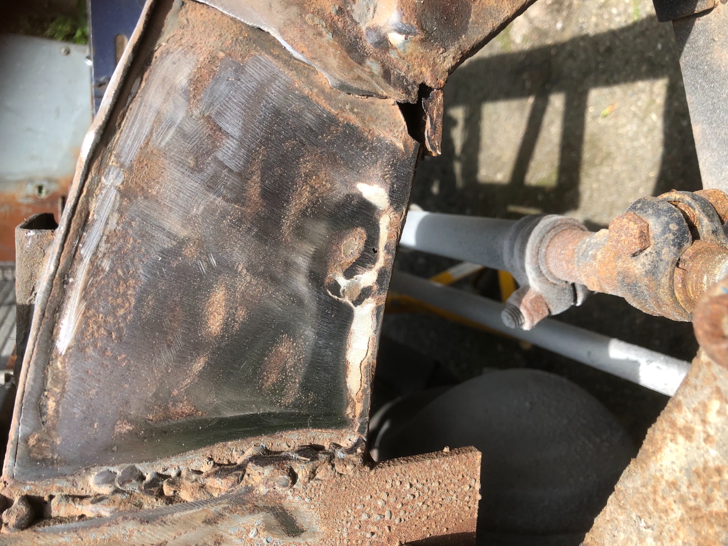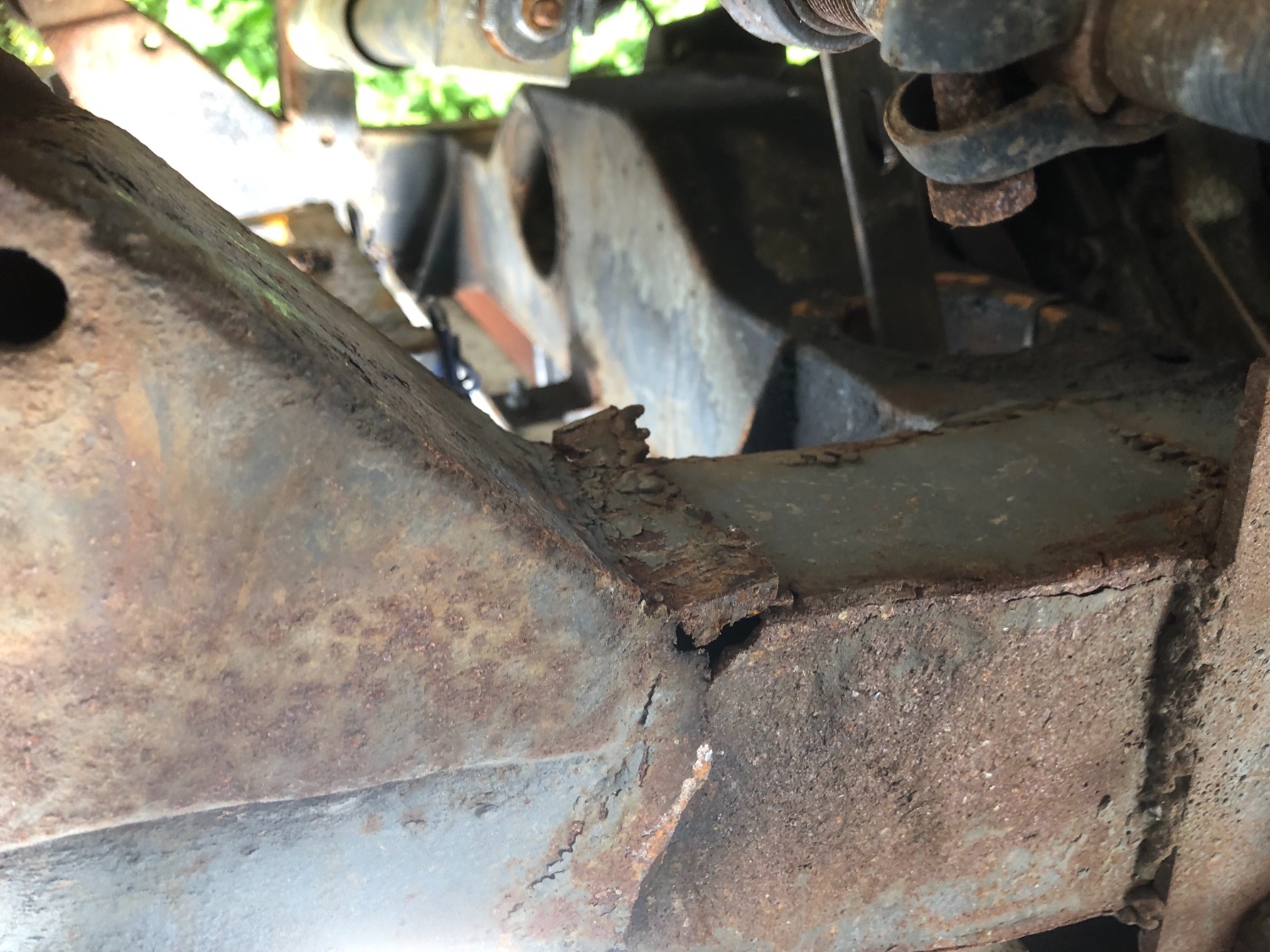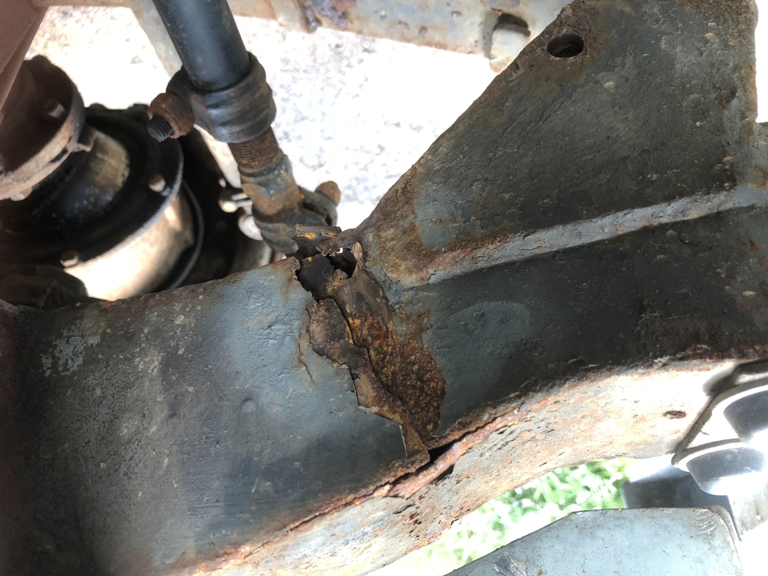 My 88" passed an MOT and failed like that (but not quite so badly) on both dumb irons about 7 months later. If there's no evidence of external corrosion it's easily missed and my tester had even hit it with the testing mallet!