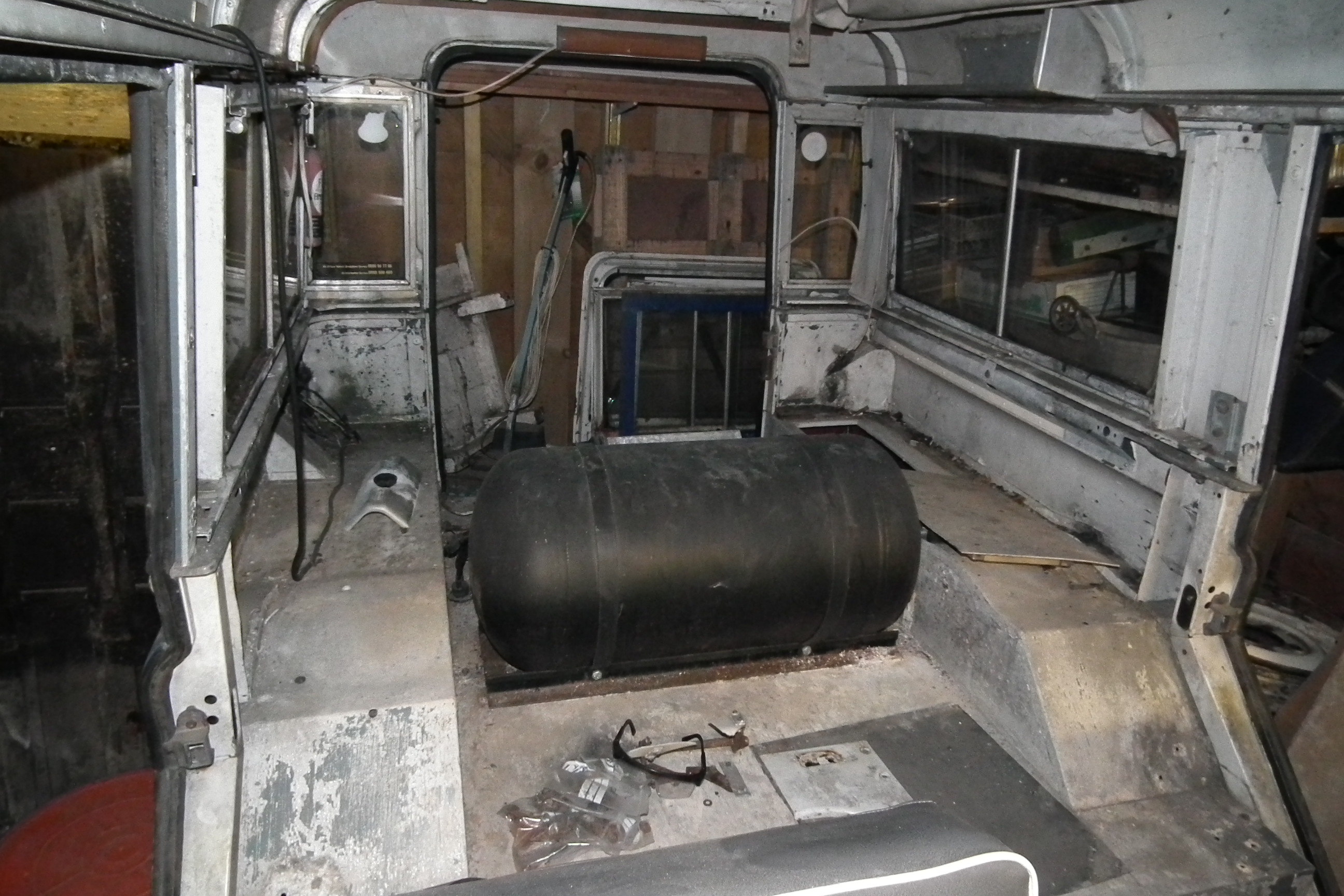 Once in, I took off all the doors (which were dropping rust every time they shut), and took out the floors, so I could brush all the rust and much out the holes. I also took out the back seats, so give me a bit more room in the back. I've sanded down the two new door tops I have, which I want to get galvanised as tests, although there is a small amount of paint inside the box section, which has stumped me. Ideally it ought to be sand blasted out, but i'm not really sure yet... I have also taken off the horribly rusted side steps, and sent the jerry can holder off to a nice chap in Yorkshire to be repaired!