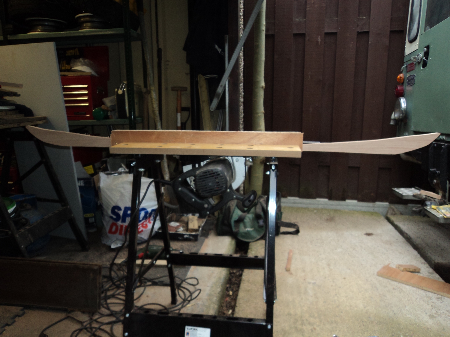 I've stripped the rivets out of the long hinges and in an ideal world I think I'd like to buy new ones. Does anyone know of a supplier? I'm fairly confident that these will be able to be used if cost or availability is a problem. The metalwork on the roof is quite primitive but I was surprised how well it copes with the passage of time. It will clean up quite nicely I think. I've used the old rotten wood as a loose guide/pattern and made the basic shapes for the roof-rack supports and the front cross piece. It's from a sheet of 18mm marine ply. Big decision now is how to treat it. I've bought ronseal yacht varnish but I'm still wondering if I want to stain it first. The old stuff was quite dark....and I've seen lots of pictures of lots of dark ones...but then again, I've seen Robins lighter woodwork up close......some thinking to do. Another decision is whether to cut the shape out of the rack supports. How much weaker will it be? Are the holes there for air to pass through.....and exactly how many more mpg will I get with the reduced drag?.no...not a serious question!