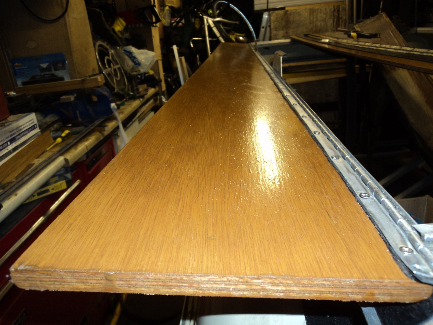 I don't know if I've done the right thing, but I had another go with the other one. I fired staples into the whole length half way between each screw hole, measured it all up again for the hinge and I've got it all attached. It seems O.K ish, but I wouldn't say that the rubber has sealed against the wood. It's raised a little where each of the screws have grabbed.