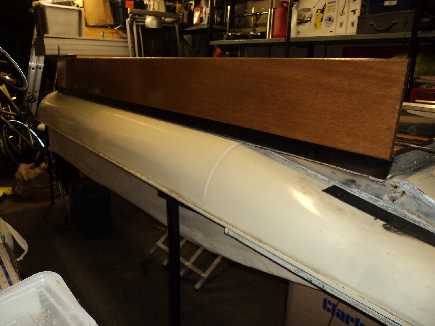Working in my garage is tight. I've polised up the aluminium down one side.....and I'll move it all tomorrow and have a go at the other side with the staple additions. I suppose I could scratch the rubber with sand paper to see if the sikoflex grabs better?