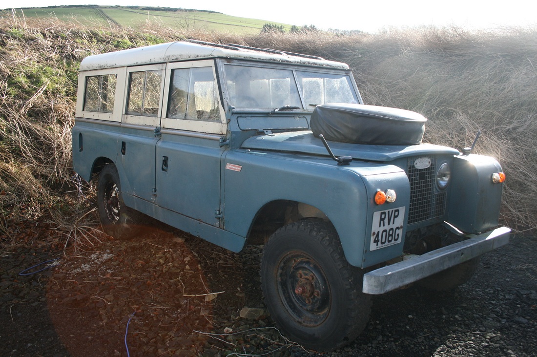 First up is this Marine Blue 109 in what I believe is SW configuration, has Carawagon badges on wings, Searle Custom built label on rear along with a FWD Motors Ltd plate on rear, no other fittings to suggest it was ever a camper configuration. Petrol engine, turns over on the handle, not attempted to connect battery.