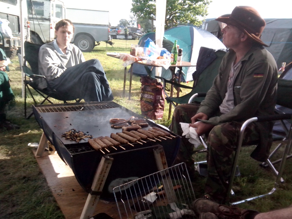 As there were only two of us on our stand, we joined the S2C for the Saturday evening around their firepit in the improving weather (as you can see, the sun came out