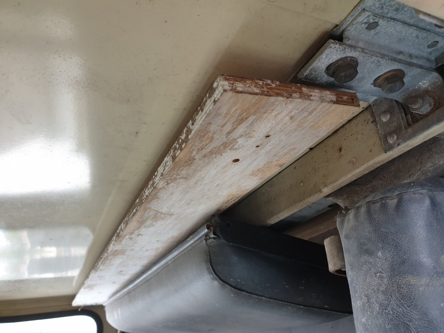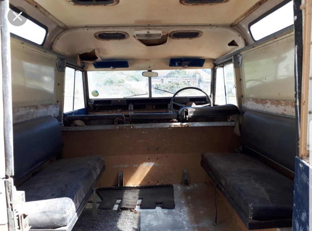 I think what you have is the basic Safari.wagon. They came as I remember from Rovers fitted with fully trimmed Stn wagon roof with alpine lights and rear door, most had Rover Deluxe seats, but some had basic seating, Don't know when Rover introduced Deluxe seating, late seventies at a guess? Searles did also make their own seating( Ergonomic upholstery) The internal sides of the hard top were trimmed by Searles , the remains on yours are is the wood strips over the seat rear bench seats. Some also had a cooker on the rear door ,Carawagon style, or gun racks.
