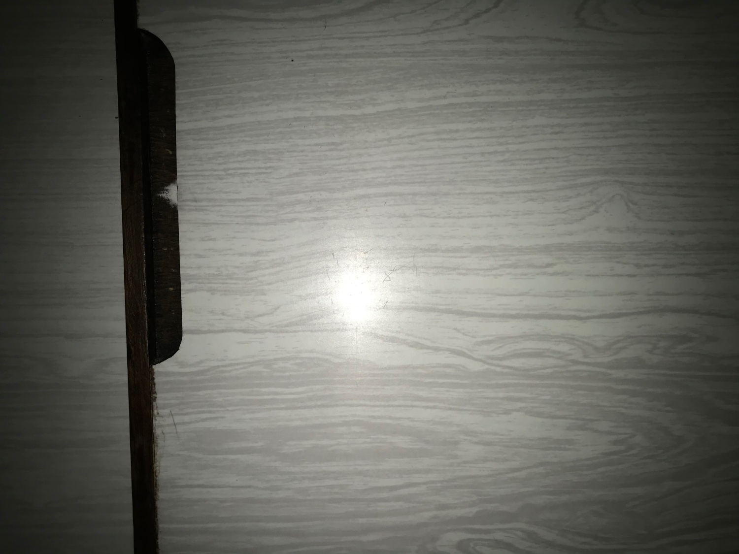 In pulling apart the side cabinet I found that they had stuck the reddish laminate over the top of what may be the original. A white wood grain pattern, the photo is one of the kick boards, about 10 inches tall.